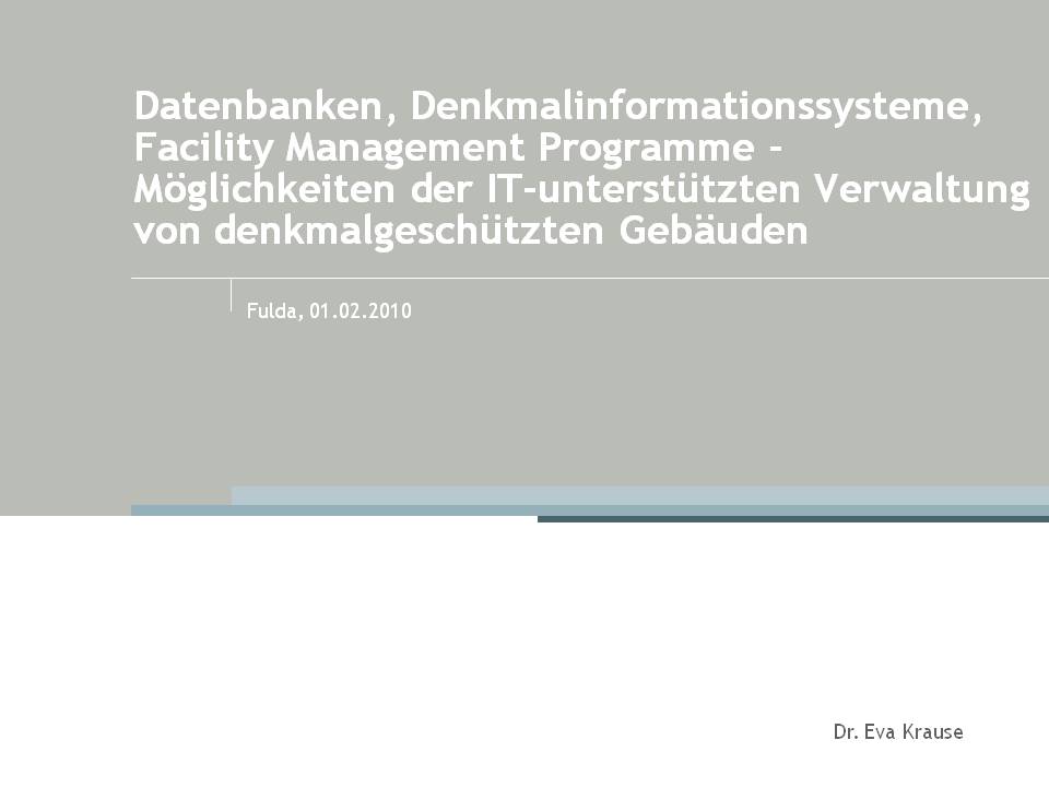 Datenbanken, Denkmalinformationssysteme und Facility Management Programme, vergleichende Studie